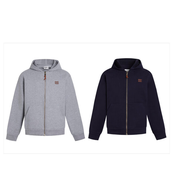 - 미우미우 로고 코튼 후드 집업으로 캐주얼한 활용이 가능한 상의 제품입니다.