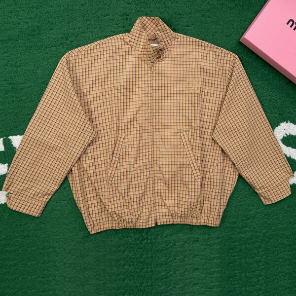 - 미우미우 브랜드의 블루종 스타일 체크 자켓으로 일상복에 적합한 아우터입니다.