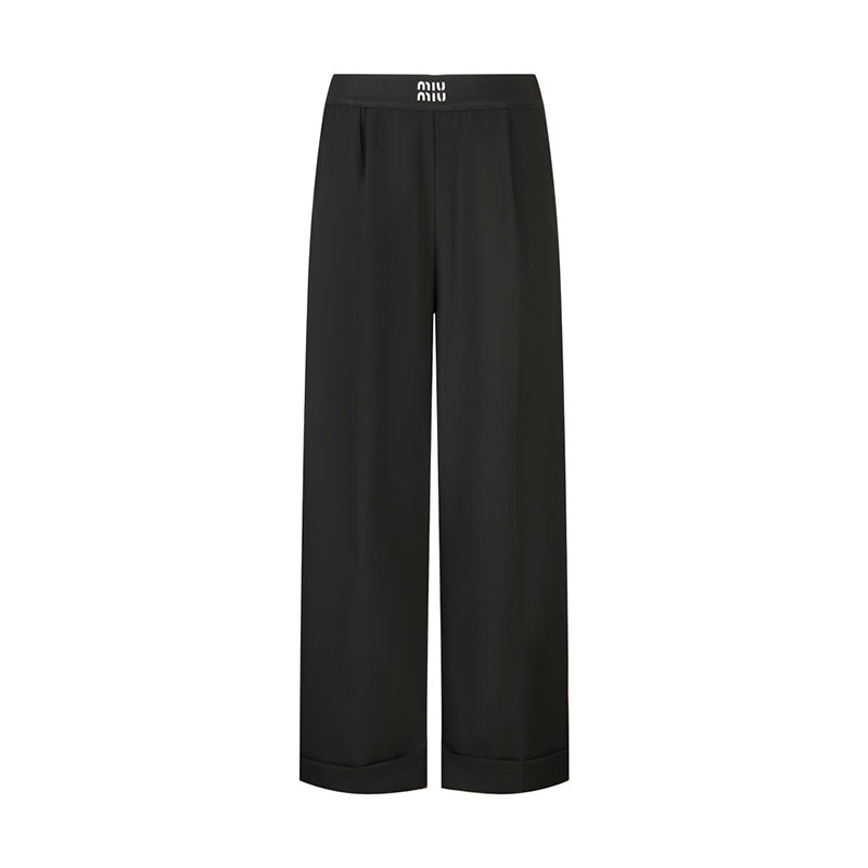 - 로고 밴딩 디자인으로 허리 조절이 가능한 와이드 팬츠입니다.