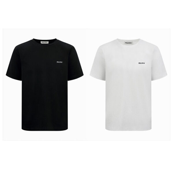 - 미우미우 로고가 인쇄된 코튼 반팔 티셔츠로 일상복으로 적합합니다.