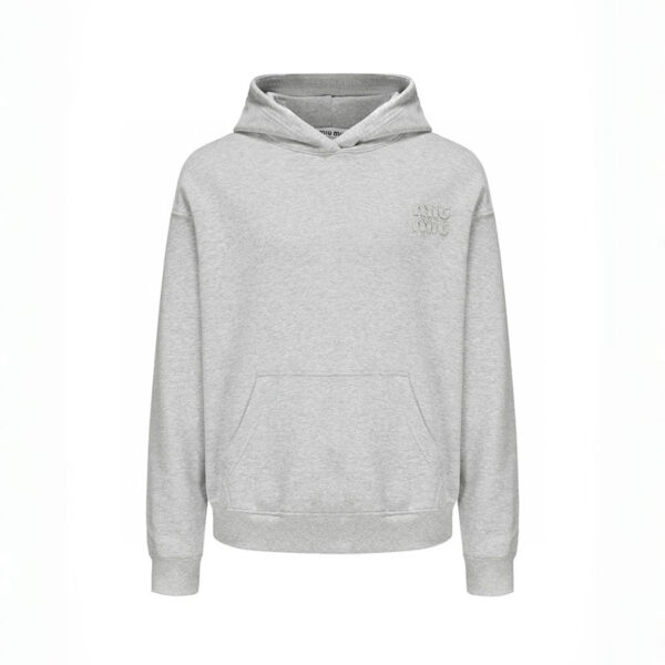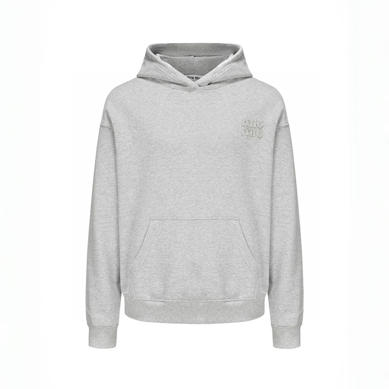- 미우미우 브랜드의 코튼 소재 오버사이즈 후드 티셔츠입니다.