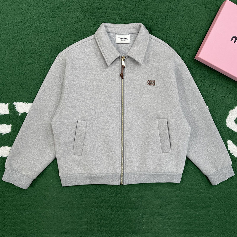 - 미우미우 잔디집 로고 저지 블루종 자켓은 간편하게 착용할 수 있는 여성용 아우터입니다.