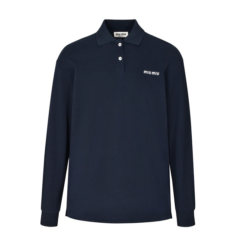 - 미우미우 로고가 들어간 폴로 스타일 셔츠이며 코튼 피케 소재로 제작되었습니다.