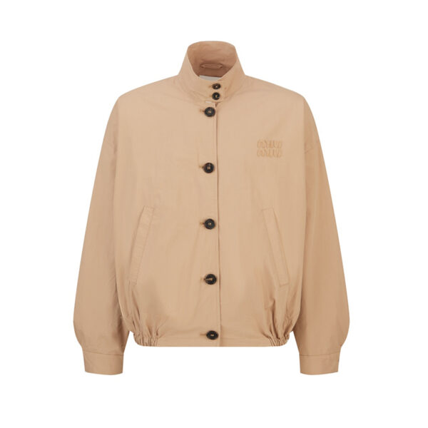 - 본 제품은 미우미우의 로고 포플린 블루종 자켓으로, 가볍고 실용적인 디자인을 갖춘 아우터입니다.
