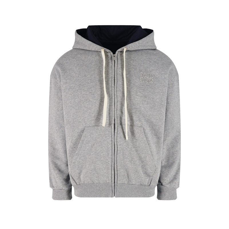 - 미우미우의 로고 아플리케가 돋보이는 리버시블 후드 집업입니다.