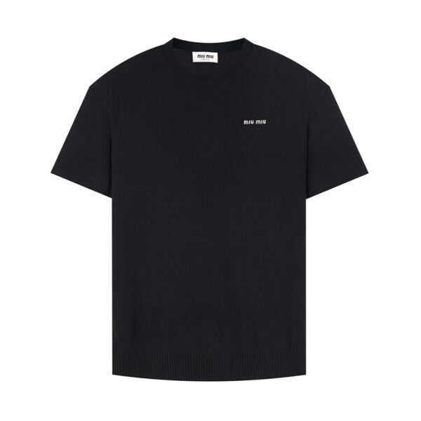 - 미우미우 로고가 있는 울 반팔 니트로, 캐주얼 및 데일리웨어용입니다.