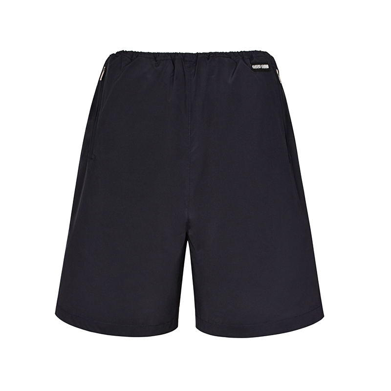 - 미우미우 브랜드의 숏 팬츠로, 나일론 소재로 제작되어 가볍고 내구성이 좋습니다.