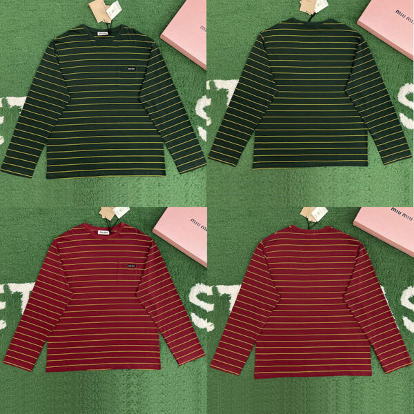 미우미우 【잔디집】 스트라이프 코튼 긴팔 티셔츠(레어)