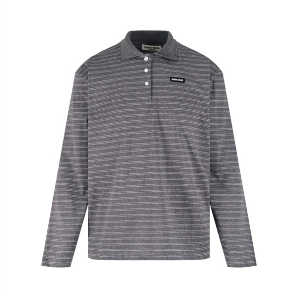 - 클래식 스트라이프 패턴이 적용된 미우미우 브랜드 상의 제품입니다.