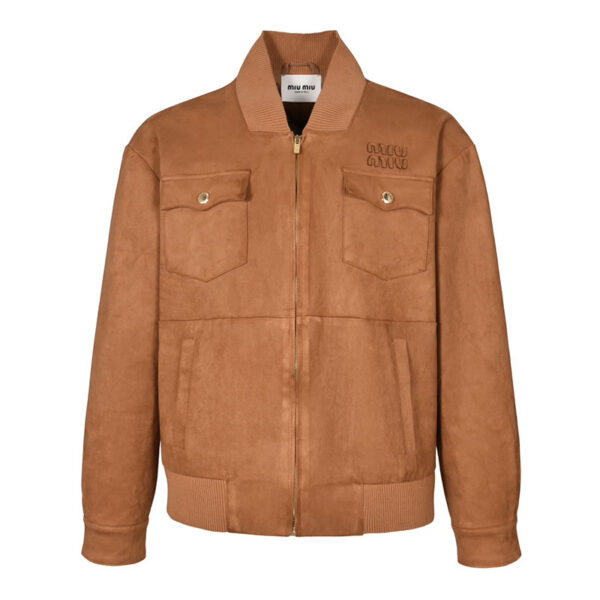 - 스웨이드 나파 가죽 소재로 제작된 미우미우 여성용 자켓입니다.