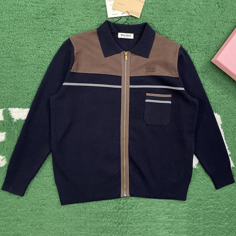 - 울과 레더 소재가 혼용된 집업 가디건으로, 보온성과 활용도를 갖춘 여성용 아우터입니다.