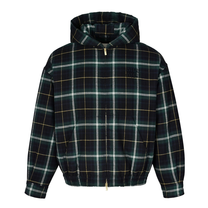 미우미우 【잔디집2】 24FW 코튼 체크 후드 집업 자켓(세븐)