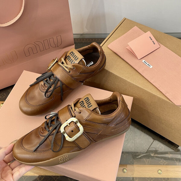 - 미우미우 로고 버클 스트랩 스니커즈는 일상적인 착용에 적합한 신발입니다.