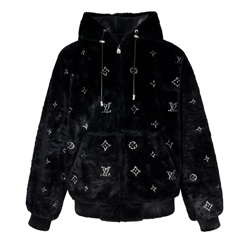 • 루이비통 모노그램 엠벨리시드 램스울 시어링 후디로, 겨울철 착용에 적합한 아우터입니다.