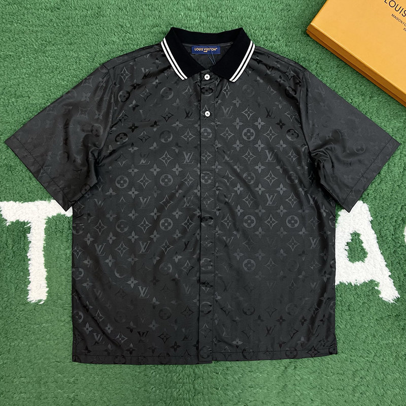 루이비통 모노그램 무아레 실크 자카드 반팔 셔츠입니다. 여름철 착용 가능한 고급스러운 소재의 셔츠입니다.