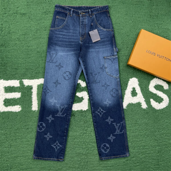 - 루이비통의 모노그램 디자인이 적용된 워크웨어 스타일 데님 팬츠입니다.
