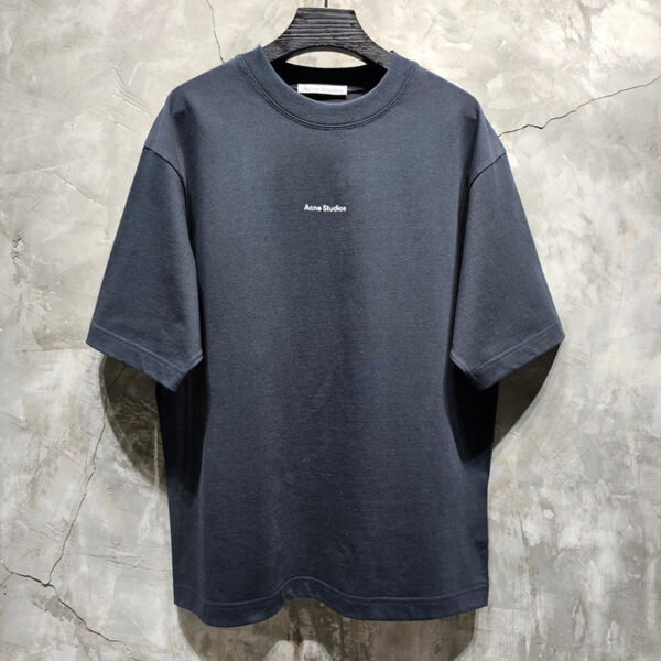 아크네의 오버핏 반팔 로고 티셔츠입니다. 편안한 착용감과 넉넉한 핏이 특징입니다.