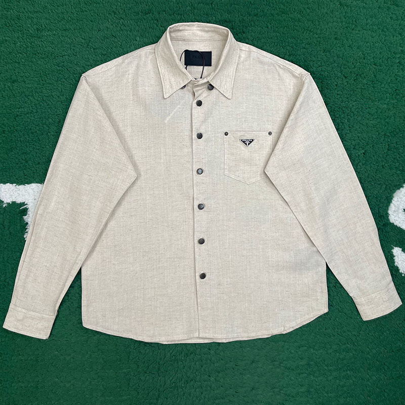 - 이 제품은 프라다 브랜드의 샴브레이 코튼 리넨 셔츠로 상의 용도입니다.