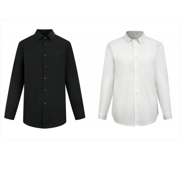 - 프라다 브랜드의 긴팔 셔츠로 체스트 로고가 디자인적으로 적용되어 있습니다.