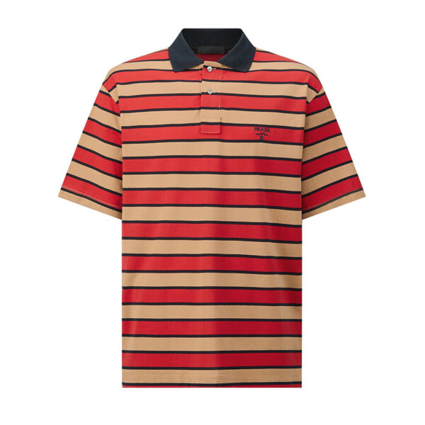- 프라다 로고가 포함된 스트라이프 패턴의 반팔 폴로 셔츠입니다.