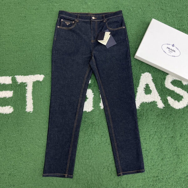 - 프라다 로우 컷 클래식 데님 팬츠로 캐주얼한 하의용 의류입니다.
