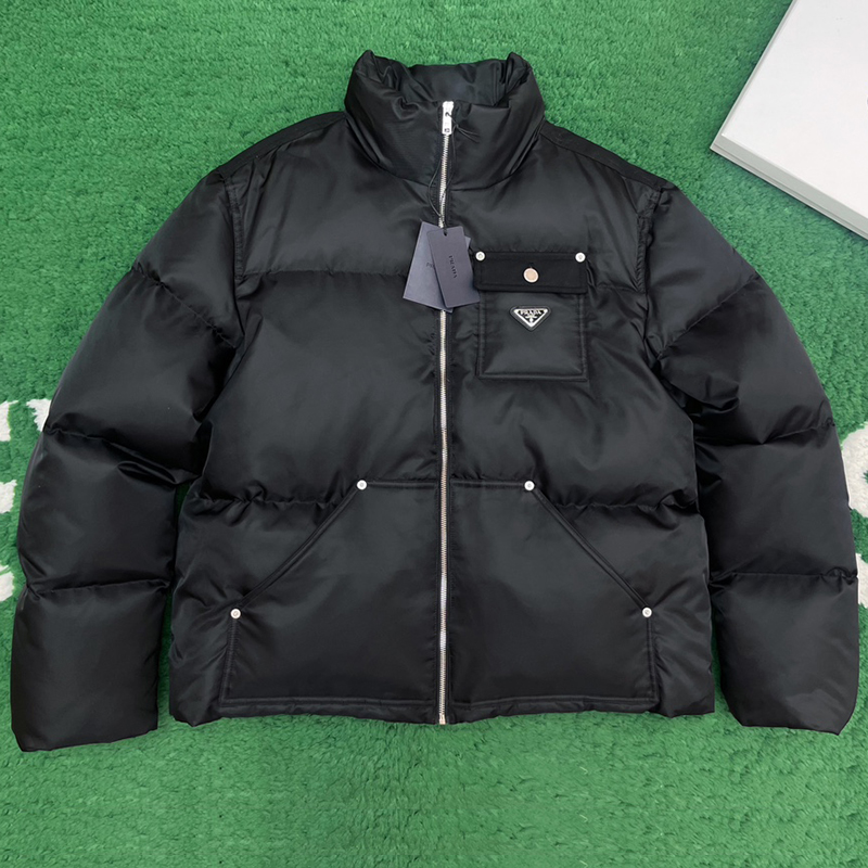 프라다의 경량 다운 자켓으로 가볍고 보온성이 뛰어납니다. 크롭 디자인으로 다양한 스타일에 매치하기 좋습니다.