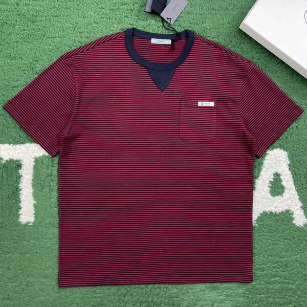 프라다 【잔디집】 오버사이즈 스트라이프 저지 코튼 반팔 티셔츠(레어) 내부 이미지