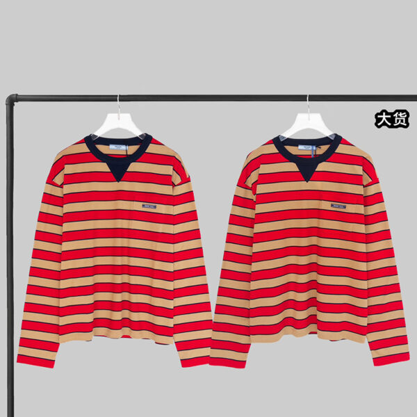 - 프라다에서 제작한 스트라이프 롱슬리브 티셔츠로, 일상복으로 사용하기 적합한 상의입니다.