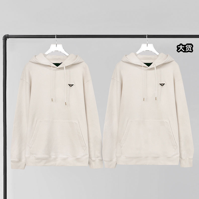- 프라다 브랜드의 트라이앵글 로고가 특징인 코튼 후디입니다.