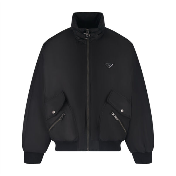 - 프라다 브랜드의 트라이앵글 로고가 있는 리나일론 소재 다운 패딩 자켓입니다.