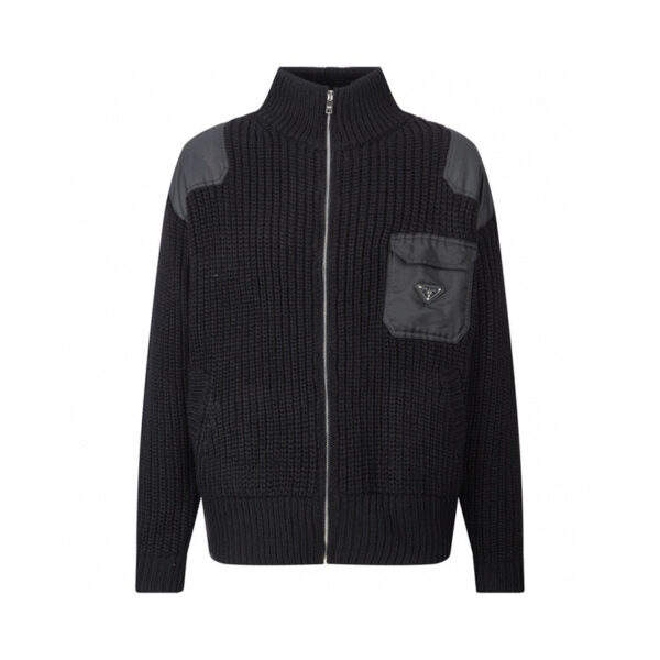 프라다 【잔디집2】 트라이앵글 로고 포켓 울 캐시미어 니트 자켓 (세븐)