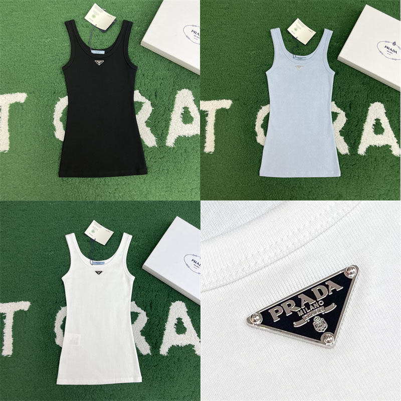 • 프라다 트라이앵글 로고 코튼 탱크 탑으로 여름철 기본 아이템입니다.