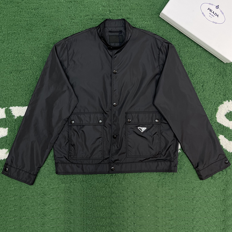 - 프라다의 바람막이 자켓으로, 경량 나일론 소재를 사용해 바람을 효과적으로 차단합니다.