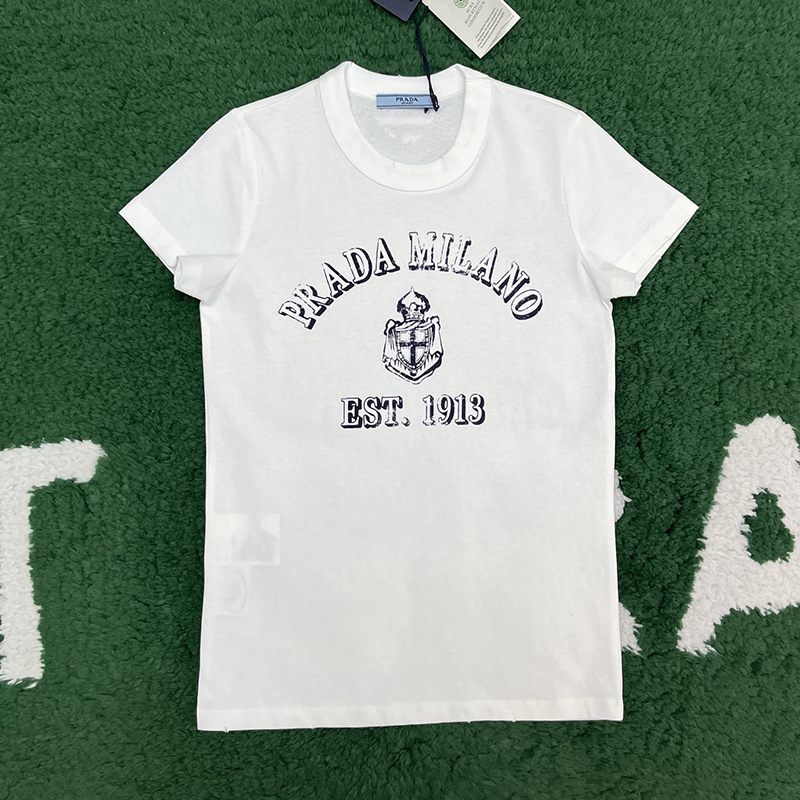 - 프라다 여성용 반팔 티셔츠로, 기본적인 상의 아이템입니다.