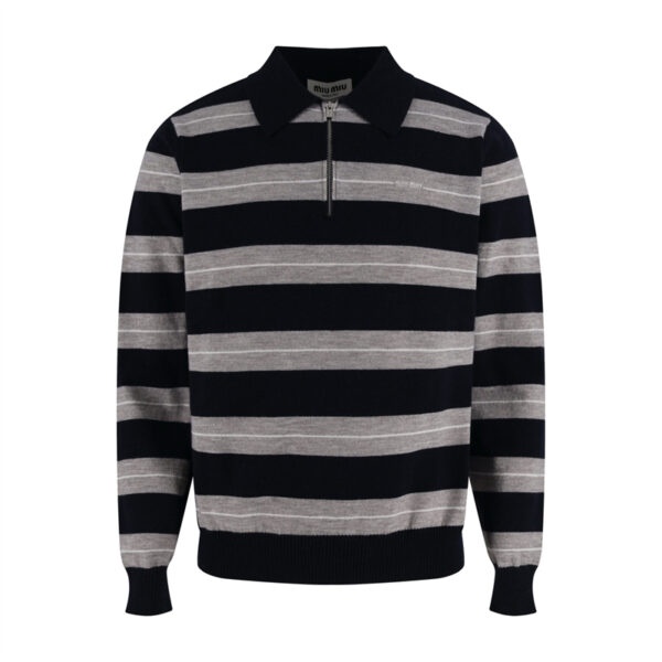 미우미우 【잔디집2】 스트라이프 하프 집업 폴로 셔츠 (세븐)