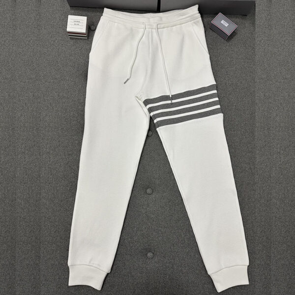 - 톰브라운의 4-Bar 와플 패턴이 적용된 사선완장 스웨트팬츠입니다.