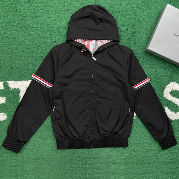 - 톰브라운 브랜드의 후드 집업 자켓으로, 일상적인 외출이나 간절기에 착용하기 적합한 아우터 제품입니다.