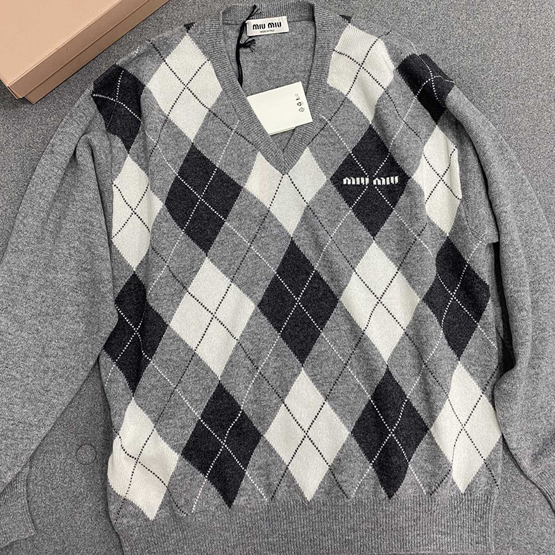 - V넥 구조와 아가일 패턴이 돋보이는 디자인입니다.
