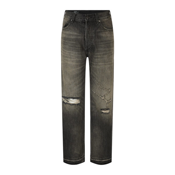A: 일반 데님바지처럼 착용하며, 디스트로이드 부분을 주의해서 관리하세요. - Q: 세탁 및 보관 방법은 어떻게 되나요?